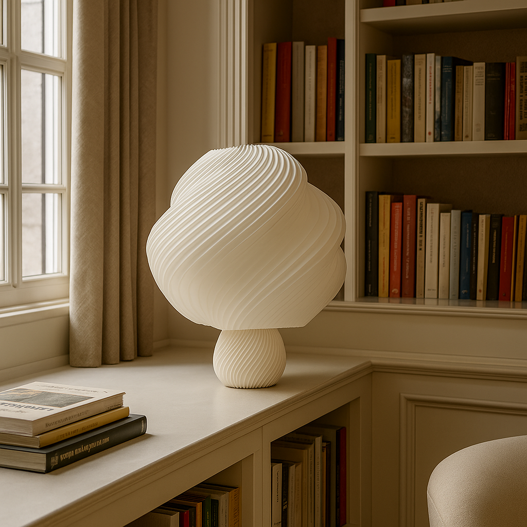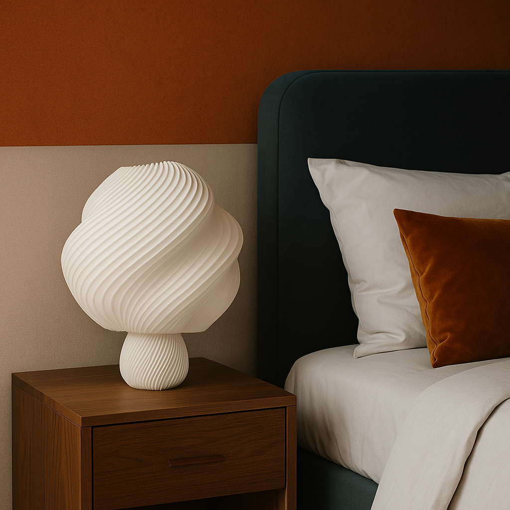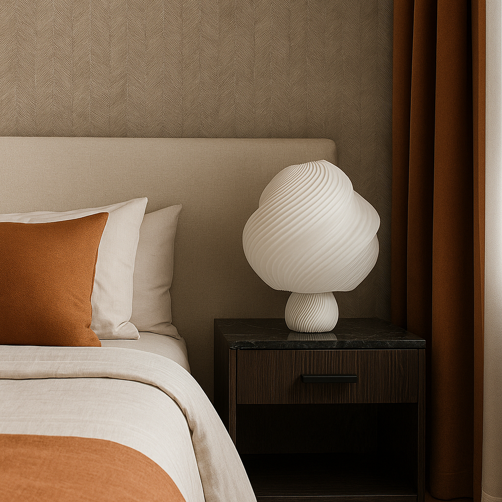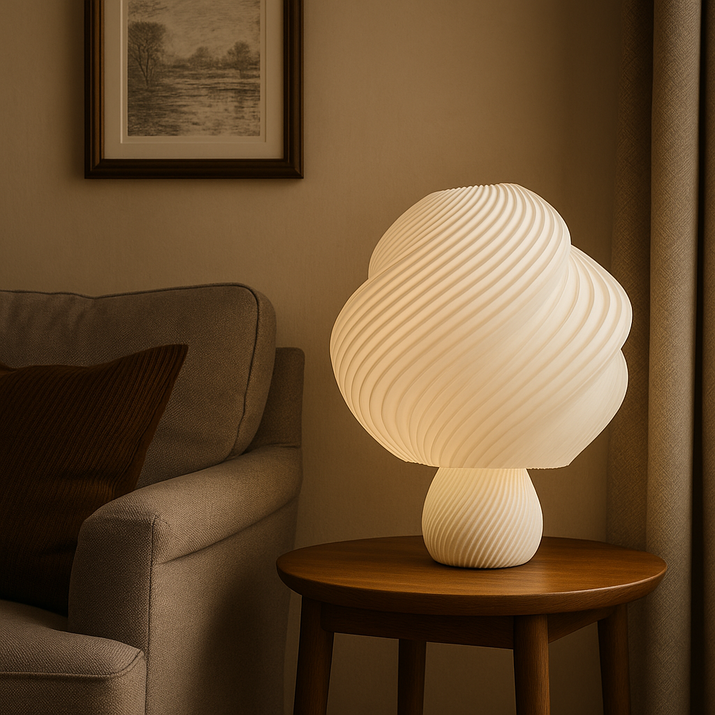 Elegância e design fluido em perfeita harmonia. Com linhas onduladas que remetem à suavidade do vento, este abajur branco combina sofisticação e contemporaneidade. Sua cúpula em tom vibrante contrasta com a base neutra, criando um ponto de destaque refinado para ambientes modernos. Uma peça de design que ilumina com estilo e valoriza qualquer espaço exclusivo.