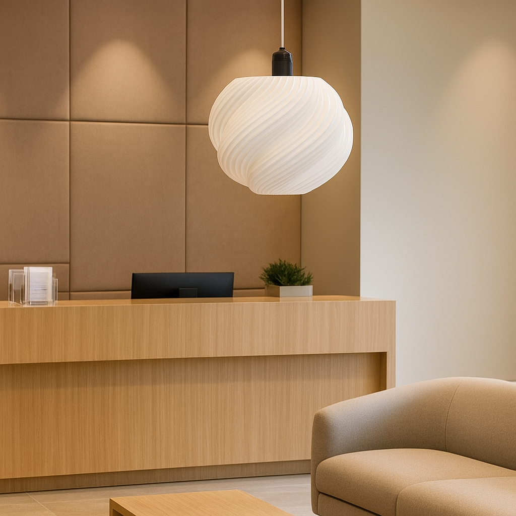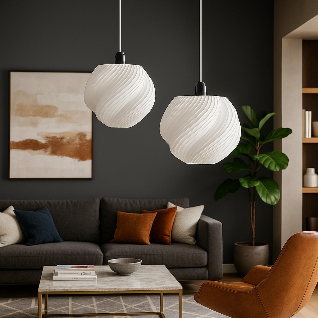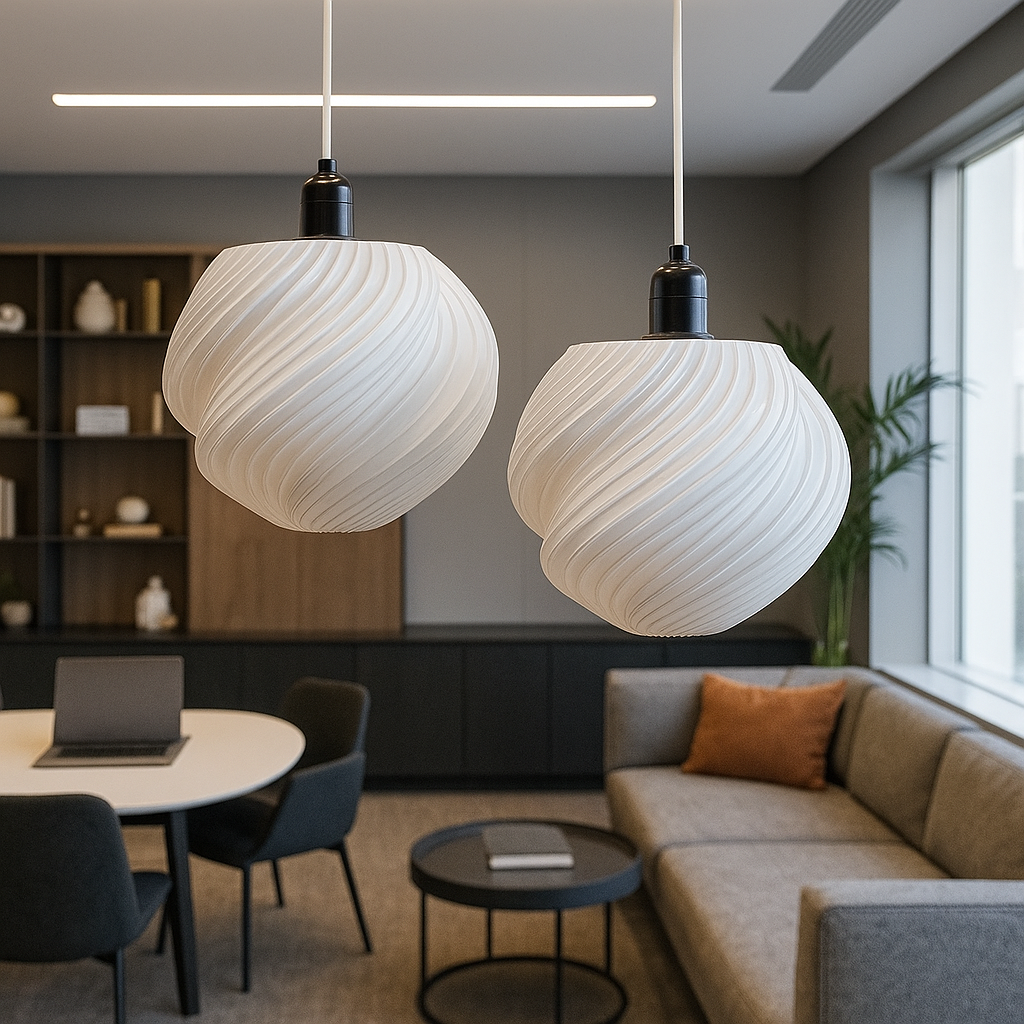 Com textura em camadas e curvas suaves esta luminária cria um ponto de destaque suave em qualquer ambiente. A peça é produzida com alta tecnologia em nosso estúdio Pinarte a partir de polímero termoplástico biodegradável, minimizando o desperdício e apoiando uma forma mais consciente de produção.