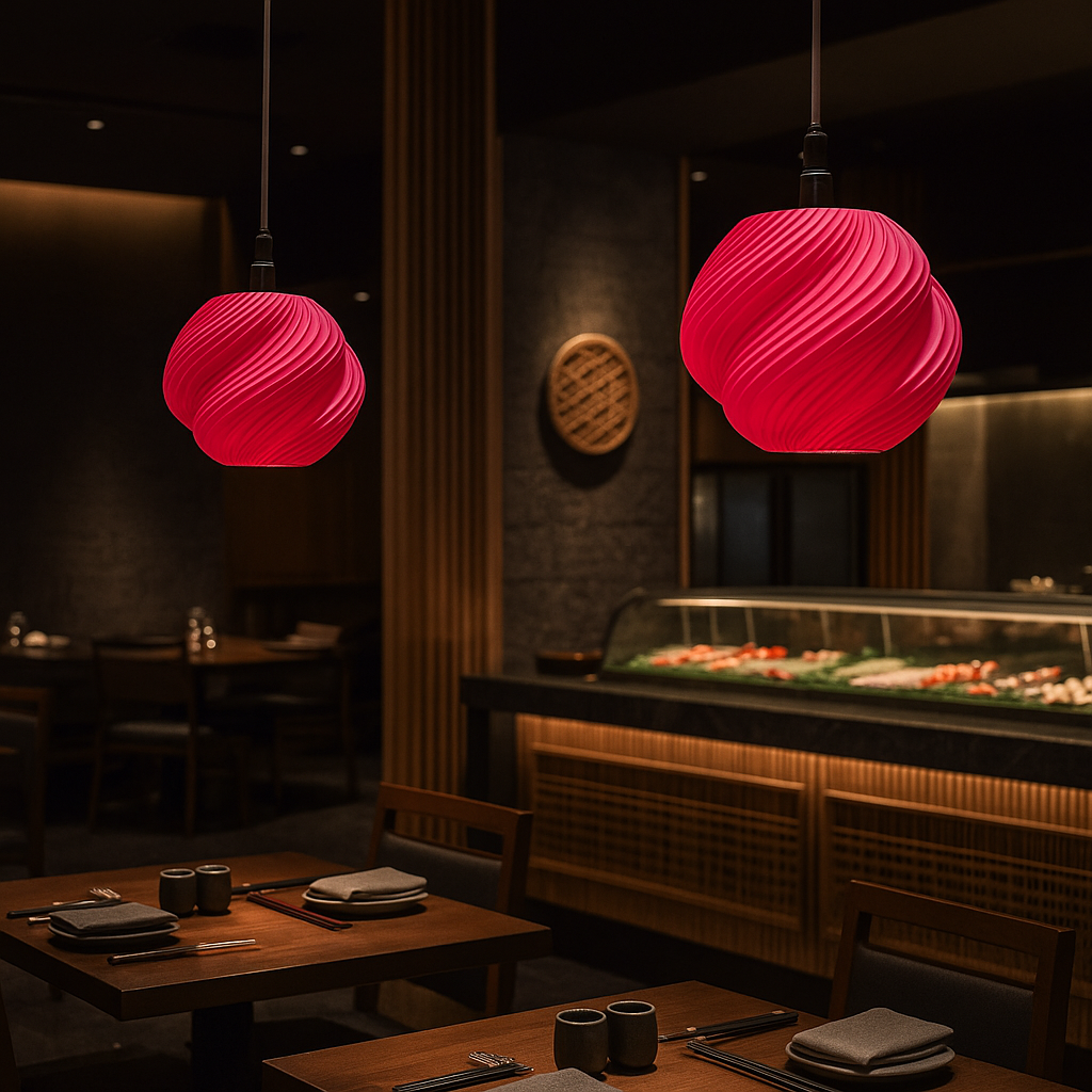 Com textura em camadas e curvas suaves esta luminária cria um ponto de destaque suave em qualquer ambiente. A peça é produzida com alta tecnologia em nosso estúdio Pinarte a partir de polímero termoplástico biodegradável, minimizando o desperdício e apoiando uma forma mais consciente de produção.