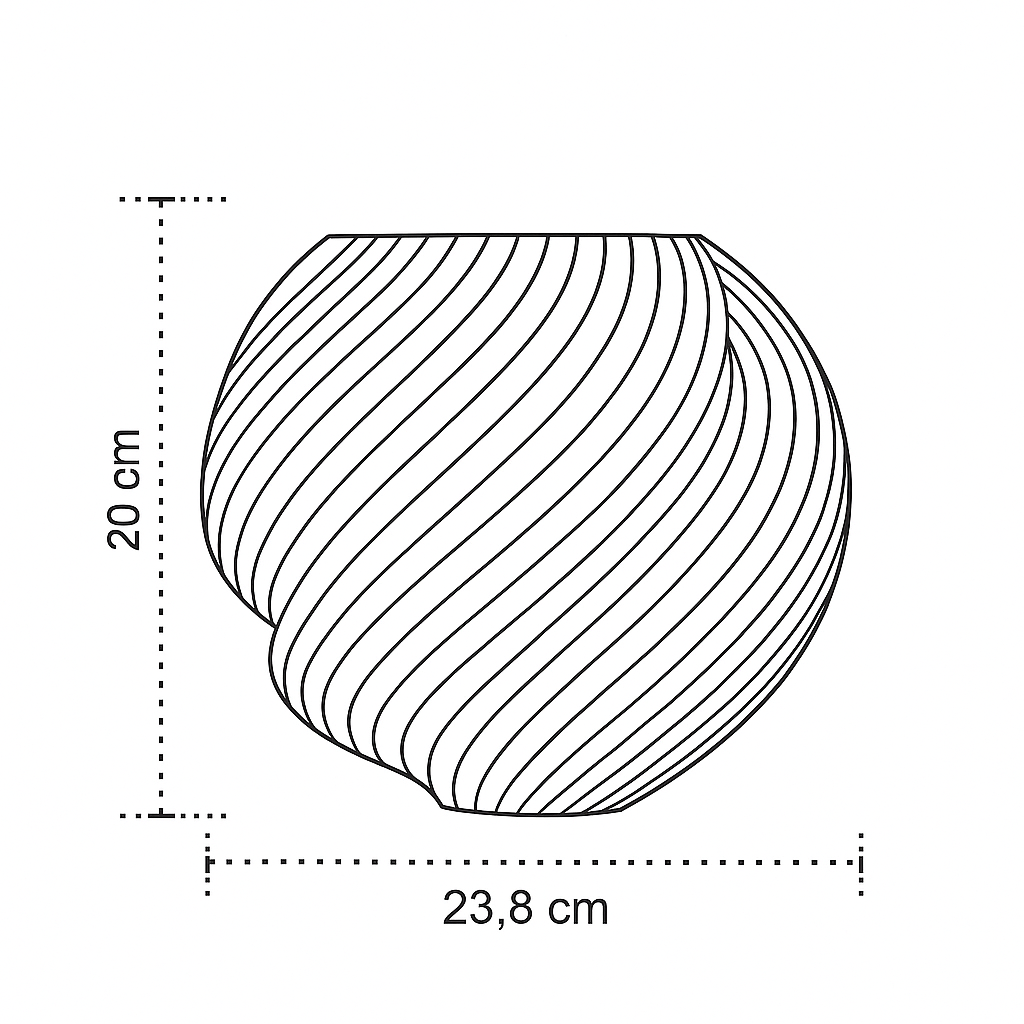 Dimensões: Altura 20 cm, Largura 23,8 cm, Profundidade 23,8 cm.